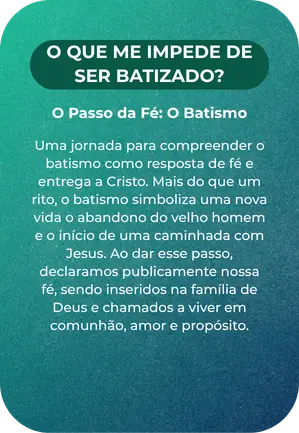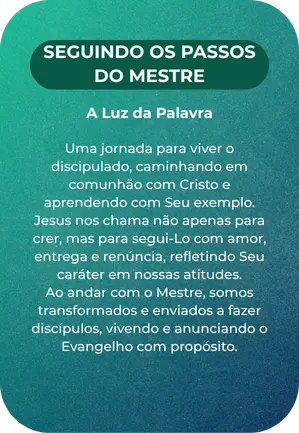 O Discipulado com Paixão é uma jornada 100% gratuita, criada para te ajudar a crescer na fé, fortalecer seu relacionamento com Deus e viver o Evangelho de forma prática no dia a dia.